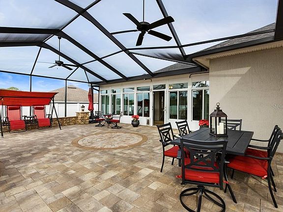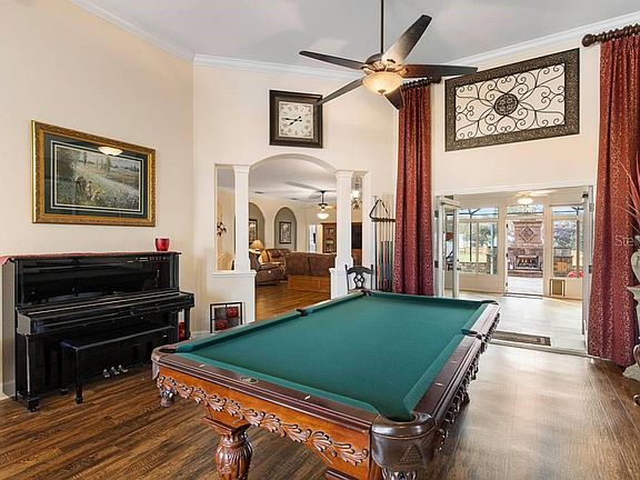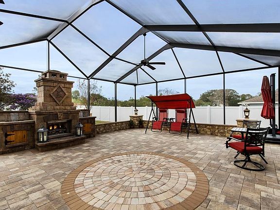 PRICE REDUCED AND ABLE TO CLOSE SUPER FAST!!! If you ever wanted to sit under the stars at night and enjoy a beautiful fireplace and spa - this is THE home for you! Located in the gated community of Hills of Arietta, this beautiful home has many special features including a fantastic newly added $75,000 screened lanai with an 8x14 swim spa with fountain, and a custom designed outdoor gas fireplace with waterfall feature and sitting walls! Recently upgraded is a former porch that was remodeled into a lovely Bonus Room with new windows, air conditioning and tile flooring and overlooks the large screened-in lanai area - WOW!!! Beyond is a spacious backyard with beautiful blooming trees and a custom fire pit area and still - yard has plenty of room to play, all privacy fenced. From the front door - soaring 10 and 12 foot ceilings add to the spacious feel of this lovely home! A formal living and dining and large informal areas are perfect for entertaining! A fantastic triple split plan - Master Bedroom Suite to the right of the entrance area, 2 bedrooms and hall bath off the kitchen and a fourth bedroom and bath off the family room -- a perfect floor plan for visiting friends or as an in-law suite for visiting family or multi generational families!! The eat-in kitchen, with soft close drawers and Cambria counters, has loads of storage with a double door pantry, is open to the Family Room, has a breakfast bar AND a breakfast nook with large windows overlooking the Bonus room and Lanai! NO CARPET! This home has NEW FLOORING - gorgeous vinyl plank flooring that carries a lifetime warranty throughout most of this lovely home- bathrooms are tiled as is the inside laundry room. Other recent improvements include a new AC condenser, a new AC system in the Bonus Room, custom window treatments, pavers at driveway, front walk and front entry, new light fixtures, custom paint interior, exterior paint (2016), and a new well for irrigation. Super layout! A CASSIDY HOME built and just minutes from I-4 with easy access to Orlando and Tampa.