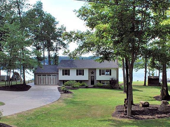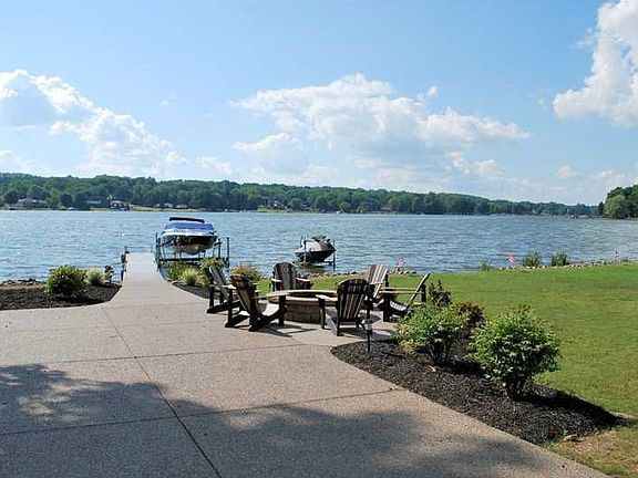LAKEFRONT!!! Newly renovated. New hardwood floors, granite island in kitchen, new paint, new carpeting, new two car garage, new covered deck, new exposed aggregate driveway, walkways and patio with fire pit. Private dock. Over 120 ft of lake frontage. One of best lots on the lake.