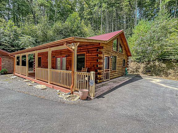 The log cabin in the woods that you have been looking for! All one level FULLY FURNISHED with 2 bedrooms and 2 full baths of mountain living fun featuring a full length covered porch perfect for rocking chairs. Stone fire place with gas logs in the great room and all wood floors sets off the perfect atmosphere for your getaway, stocked kitchen w/ breakfast bar, circular paved driveway, outdoor firepit, storage building all in the perfect setting with peace and quiet. Fully furnished and ready to go - has been an excellent rental property. Within 20 mins. of hiking, biking, whitewater rafting adventures, Murphy, NC and Blueridge, GA. Within 2 hours of Atlanta GA, Asheville NC, Chattanooga and Knoxville TN as well as The Great Smokey Mtn National Park and Dollywood - come have some fun.