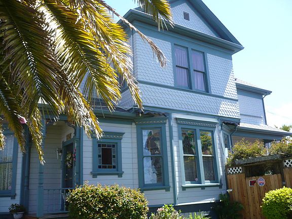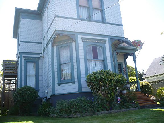 Beautiful Henderson Center Victorian home with stain glass windows, hardwood floors, tile in kitchen, new roof, new furnace, fun loving ''She Shack'' off the back, huge back yard and patio area. MIL in the back above the two car garage 1 bedroom, 1bath,living room & kitchen, also single car garage close to house. Too many features to mention, it is a must see.