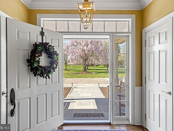 In the much sought after Jericho Valley area of Upper Makefield, this stately Ferman Lex-built stone and cedar manor style home enjoys a prime location, with 4+ sweeping acres and wonderful views of the Jericho Mountains. With 5 bedrooms, 4.3 baths, and a flexible floor plan finished on 4 levels, this handsome home can accommodate intimate groups or large crowds, with room for everyone. True to form for a solidly built Lex home, extensive wood raised panel wainscotting and millwork, rich hardwood floors, 9 ft. ceilings, transoms, and quality are evident throughout. The center entrance hall with turned staircase is flanked by a formal living room with gas fireplace & handsome built-ins, and a banquet-sized dining room with triple window to one side. On the other, a privately situated den/home office, finished with cherry built-ins, is tucked away and affords privacy. The expansive light-filled kitchen with two islands flows seamlessly into the open breakfast room, family room with stone fireplace, solarium, and sitting room, all basking in southeast sun for much of the day. The cook’s kitchen is finished with custom light cherry cabinetry, granite counters, and Miele, Subzero and Viking appliances, along with a wine refrigerator, pantry and built-in desk. Glass sliding doors and windows galore showcase the outdoor patios and fenced yard to the rear from the entire light-filled space. A newer expansive great room with vaulted ceiling, bar, flat screen TV, and a free-standing gas fireplace is the place to be for playing pool, watching sports and movies, or simply hanging out. Two powder rooms, and a spacious walk-through laundry room with built-ins and tile flooring, complete the first floor. On the 2nd floor, the Main Bedroom boasts rich cherry wood flooring, a large walk-in closet room with 2 windows, and spacious main bath with jetted tub and shower. There are 3 en-suite spare bedrooms, one a two-room guest suite, ideal for in-laws or an au pair, including a kitchenette, separate staircase, and balcony overlooking the great room. The guest suite can easily be isolated from the other 2nd floor areas, if desired. A finished, carpeted 3rd floor is a great bonus area with two large rooms, one presently being used as a spare bedroom, and the other a study or media room- a mecca for older kids and their friends! The lower level can be a wonderful respite, or a playroom for children, offering a cozy gathering area with carpeting and a fireplace. There is a wine bar, spacious home gym, and unfinished storage and utility areas. An interior staircase from the lower level up to the attached oversized 3-car garage adds a level of convenience for access and storage. To the rear, there are paver and flagstone patios and terraces, stone retaining walls, and a macadam path that makes bike riding and skating safe and easy. There is also a detached screened porch, great for seasonal entertaining! The huge, level rear yard, which backs to a neighbor’s meandering stream, enjoys perfect sun orientation and there is plenty of room for a pool! And, the bonus of being on “the loop”, a four-road, 3+ mile square for walking and biking, which is just outside your door! Extras include professional landscaping, zoned HVAC, central vac, a newer roof and windows, closets with solid wood shelving, a propane fired back-up generator and Council Rock Schools. Location and quality make this home and property truly a rare find!
