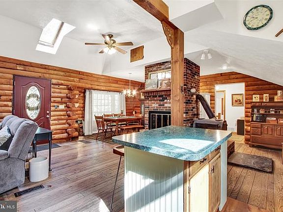 If you're looking for a log home in a quiet setting, this home is for you! Enjoy evenings on the covered porch while listening to the creek down below.This 3 BR, 2 Full Bath home has an open floor plan, with dining room, living room, finished walkout basement and large yard. The detached garage is perfect for a workshop or storage; you can also use it as a guest house.