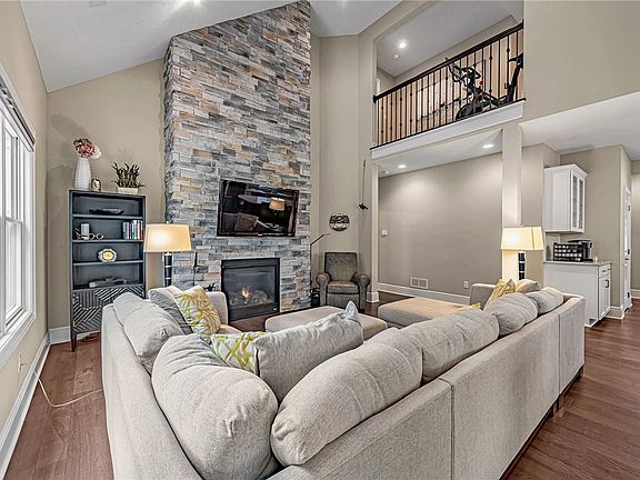 Private, beautiful backyard with EASY MAINTENANCE FREE living in a 4 year old custom-built Eddy Home, Petersburg model. Feel at home the moment you walk into the front door. High ceilings in front hall and the great room.And..ooo-lala the stacked stone fireplace wall from floor to ceiling is the highlight of the room. Not only detailed molding throughout, but also around the windows. Wood flooring in the living space.Convenient loft overlooks Great room and can be used as exercise or reading room. Two home offices. Walk-in attic for storage. Enjoy the privacy of the back patio overlooking woods and seeing wildlife. Covered area on the back porch with ceiling fan and light. "Smart" thermostat and doorbell.