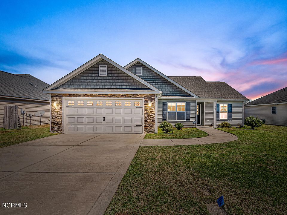 Welcome to this 1 story, 3 bedroom 2 bath home with 2 car garage in the highly desirable Carolina Plantations. Covered front and back porch, fenced in backyard with easy to maintain landscape. Open and split floor plan with very spacious kitchen with tons of counter space and cabinets. New carpet. Large master bedroom with walk-in closet, dual vanities in master bath with stand up shower and garden tub. Super close to local beaches, schools, shopping, bases and several other amenities. No city taxes!