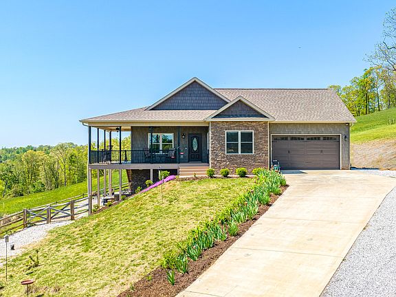 If you're looking for a beautifully designed Craftsman Basement Rancher, then look no further. This home is situated in a cul-de-sac w/ 1 extra building lot, for a total of 1.12 acres nestled in a desirable cul-de-sac location. You'll enjoy peaceful country living in this Craftsman style Basement Rancher w/4 bedrooms, 3 full baths. One of the standout feature of this home is the composite deck and wraparound porch that is perfect for enjoying the outdoors and gorgeous mountain views. Inside, the home is both spacious and functional. Hardwood and tile floors run throughout the home, adding a touch of elegance to every room. This home offers an open concept floor plan with great room and separate dining area. The cooks kitchen boasts, custom cabinets, granite countertops and an oversized breakfast bar with high-end finishes throughout the home. Designed with tall ceilings and recessed LED lighting, this split bedroom design floor plan offers privacy and comfort for all members of the family, The primary bedroom offers walk-in shower and double vanities w/walk-in closets. A nicely sized utility room with utility sink is also included. Two more oversized bedrooms and full bath complete the upstairs. Downstairs, there's an oversized room for extra storage. The separate attached one car garage is perfect for all your outdoor equipment or car storage. If you're someone who loves to entertain, then you'll appreciate the wet bar with its own full refrigerator, and wiring for a microwave oven, but that's not all, the finished basement offers an Extra Large Great room / Game room with cozy stone fireplace which is ventless and propane. Also included is the 4th bedroom /office and full bathroom with soaking tub. This home also features sprayed foam insulation for energy-efficiency. Bring the whole family, there are three extra lots to build on and a fully fenced yard, making it the perfect family home for those who love to entertain and enjoy the great outdoors. A huge garage provides enough room for your cars or boat. Close to lakes, 20 minutes to Knox county with low county taxes. LOTS 40 AND 43 ARE ALSO AVAILABLE FOR PURCHASE.