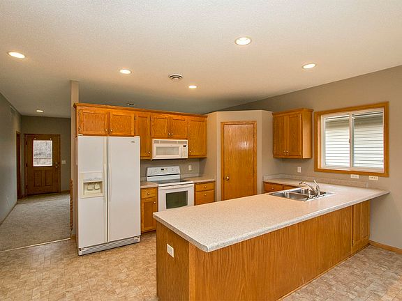 Nicely updated twin home on the edge of town overlooking the Mill Creek! Enjoy all main level living with no steps, handicap accessible, 3' doors, 9' ceilings, in-floor heat, gas fireplace, patio, 2 car garage and maintenance-free exterior. Master suite offers a separate bath and walk-in closet. All new carpet and fresh paint. Close to city park with walking trails & grocery store.