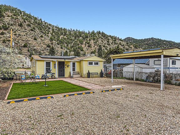 Sellers Are Motivated!! Price Reduction AND Seller is Offering to Pay Cost of a 2-1 Buydown! You are not going to find another home in this condition in Idaho Springs at this price! A very cute 2 bedroom 1 bath house with excellent access to the highway and close to downtown. The Sellers have taken great care of this home and since they've owned it have upgraded the kitchen, the bathroom, and the front yard, as well as added Solar which will be paid off at closing. Pull into your covered carport while having 3 extra designated parking spaces for guests, or park your RV! The gravel parking, turfed yard, and flagstone walkway are newly installed. Enter into a living and dining room area that lead back to a large remodeled kitchen and nice sized laundry room/pantry. Through the kitchen you can enter into the fully fenced backyard, which is currently awaiting your own vision, and large shed with rustic corrugated metal siding. There are two bedrooms, a 3/4 size bathroom, and no stairs besides the ones leading to the backyard area. There is little to no traffic on this road, and the highway side is blocked by a very tall fence with mountain views beyond it, as well as mountain views on the other side. If you like to ski, this house sits within 30 minutes to Loveland Ski Area and over four world class ski resorts sit within another 30 minutes from that. Tons of trails, mountain biking, hiking, rafting, outdoor activities all around you. Not to mention all the wonderful restaurants and amenities Idaho Springs has to offer. This captivating little town will continue to grow and even has plans to put in a gondola at Argo Mill that leads up to a mountain village! Don't miss out on your chance to get in on a piece of Idaho Springs!