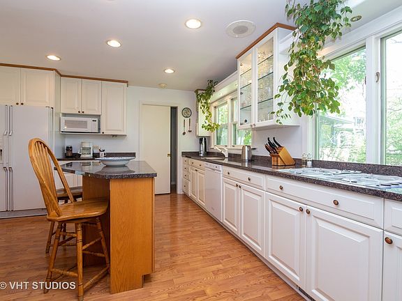 This splendid rental is a large and sunny home on wooded lot overlooking ravine surrounded by many luxury homes. Main floor features HUGE family room/great room with vaulted ceiling overlooking yard with fireplace, wet bar, mini fridge, and sliders to patio. Spacious dining room and living room with fireplace and overlooking patio/yard. Eat-in kitchen includes breakfast bar and separate table with built-in booth. First floor laundry conveniently located off of kitchen. Also on first floor: powder room, library, and 5th bedroom with en-suite bath. Second floor includes spacious master suite with en-suite bath. Two more bedrooms on second floor share a hall bath. And the 4th bedroom on the second floor features a sitting room, en-suite bath, and Juliette balcony. Full (dry) basement has plenty of room for recreation and storage. Plenty of closets and storage throughout the home. NOTE: THIS IS NON SMOKING PROPERTY