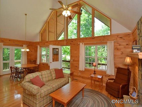Nestled on over 3 acres, this lovely & well cared for A-frame chalet is the perfect mountain get-away. Relish the winter sunrise from the expansive 800 square foot wrap-around deck. Plenty of room for expansion in the unfinished walk-out basement roughed for bedroom & 3rd full bath, &/or by building additional house(s). Gentle slope allows for gardening. Private, unrestricted, only 2 other homes on Morning Sun Ln. Minutes to the North Toe river.