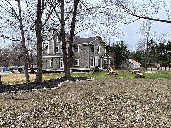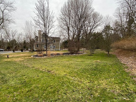 Privacy Abound! Gated stone colonial set on 1.49 Acre level lot features chef's kitchen with commercial SS appliances, center island w prep sink, butler's pantry, skylights & separate dining area which leads to the beautiful backyard. Welcoming formal living room w floor to ceiling fieldstone fireplace & adjoining den/office. Large formal dining room offers French doors to the LR & family room. Custom built-ins & stone wall in the family room. Well-sized primary suite with updated bathroom & walk-in closet. Two additional spacious bedrooms both with ample closet space. Finished walk up attic for additional space. Beautiful yard featuring gated entry w metal fencing surrounding the property, circular driveway, oversized 3 car detached garage for parking or hobbyist, patio & more. Newer roof, windows, carpeting!