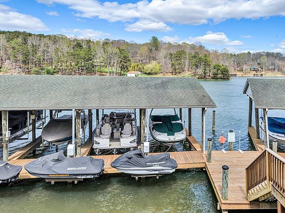 Fall in love with this captivating SMITH MOUNTAIN LAKE, waterfront townhome. Lakefront living at its finest! A gentlywooded lot with stunning views of the lake, complete with a deeded A-Roof covered Dock, Boat Lift, and Jet Ski Lift in a tranquil, deep-water cove, close to main channel. This Townhome offers a large, comfortable layout, providing the perfect space for a Forever Home or a year around Vacation Get Away! Maintenance free with all three living levels providing a beautiful view of Smith Mountain Lake.The versatile floor plan in this immaculately maintained home provides a striking, entry level Great Room, with oak hardwood floors throughout entry level, an elegant wood and stone, gas-log fireplace, and full-wall, double sliding glass doors to a screened-in porch for those tranquil moments of relaxation on the lake. This home boasts a large dedicated dining area with built-in bookshelves and elegant lighting. The gorgeous Kitchen is complete with recently remodeled, polished granite countertops, elegant cabinets, an island with cabinets, top of the line appliances, a custom tile backsplash, innovative lighting, and breakfast bar. For cozy comfort, the carpeted and spacious upper level is complete with two Stunning Master Suits, one with an elegant vaulted ceiling and vast windows to view the lake and woods, both complete with en-suite bathrooms, one with a whirlpool tub. The Lower level features a fully tiled floor, and a third bedroom or bonus room, full bath (more storage!), laundry area with utility sink, recreation room with full-wall, double sliding glass doors leading to the private patio, the lake, the inground swimming pool, picnic pavilion, and docks. This lovely lower patio is ready for BBQs, happy hour, pool parties, or quiet lake-time relaxation.