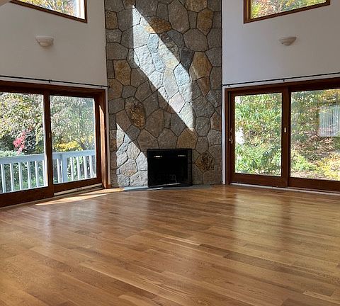 Contemporary home with lots of light, open first floor plan and seasonal Rainbow Lake views. Freshly painted interior, central A/C, washer/dryer in basement, 2 car garage, gorgeous 2 story stone fireplace. Huge primary bedroom with en-suite bathroom featuring separate shower and deep, jetted tub. Lots of new fixtures and some new appliances. Plenty of basement storage. Quiet neighborhood with great neighbors. The back yard is adjacent to open space. A really special place. 1 year Lease. Weekend showings. Brokers protected. Tenant pays for all utilities, snow plowing, lawn maintenance, gutter cleaning and trash service. Tenant will receive the home with a full tank of oil and will leave the home with a full tank of oil when they vacate. Maximum of 3 persons occupancy. No smoking. First month's rent and 2 month's security due at Lease signing.