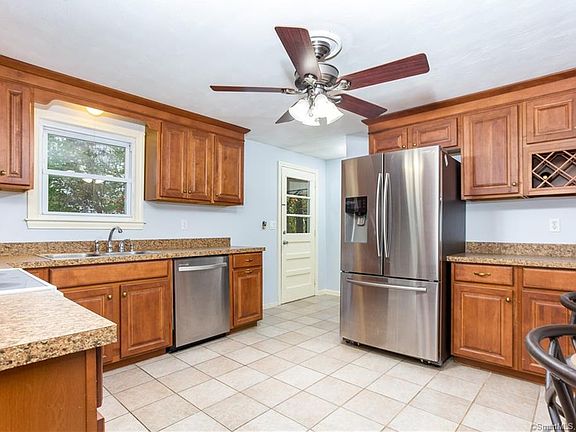 This one one wont last! 2/3 bed, 1 bath, ranch style home with carport. This features remodeled kitchen with maple cabinets, dovetail drawers, breakfast bar & stainless steel appliances, remodeled full bathroom with tub and shower combination, hardwood floors throughout, vinyl replacement windows, newer boiler and hot water tank, freshly painted interior, huge lower level with bar and workshop just waiting for your finishing touches. Large, private, level rear lot. Short drive to I-91, shopping and fine dining. Priced right and ready to move!