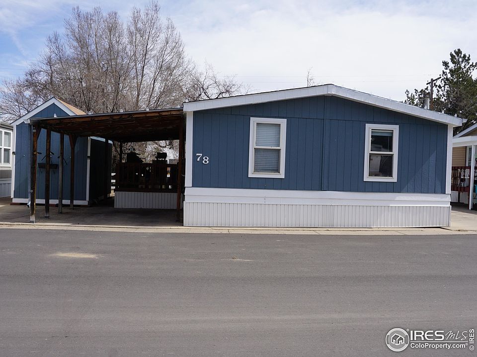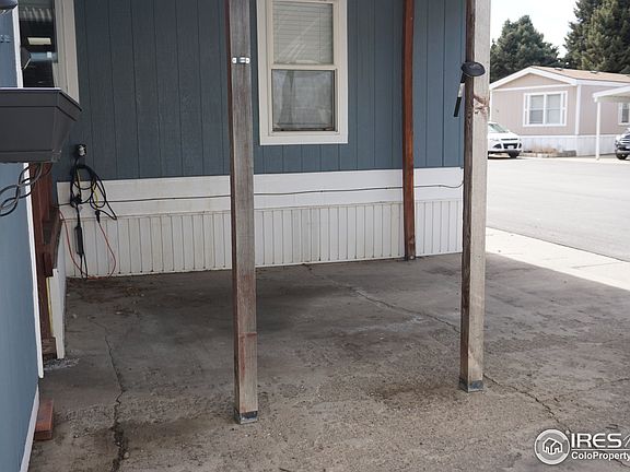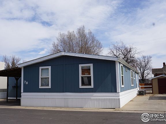 Nice Double-wide in excellent location. Walking distance to downtown Berthoud. One car covered carport conveniently located to the front door. There is a 2nd space for parking. Spacious wood storage shed with electricity. Front 16'x8' wooden deck. Front living rm & family room with storage, formal dining rm, nice size kitchen. 2 bedrms & fully upgraded bath at other West end of home. Primary bedroom with walk in closet & 3/4 bath at other east end of home. Threre are 3 cats are in the home.