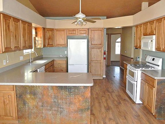 Home features wood laminate flooring, ceiling fans, gas log stove in living room. Master bedroom has own sitting w/ gas log stove and an attached office. All new windows and siding glass door. No HOA, RV Parking, 3 car garage. Outside garden shed, partially fenced yard. Views from front and back of home. New paint and carpet. Attic is set up for storage and partially insulated.