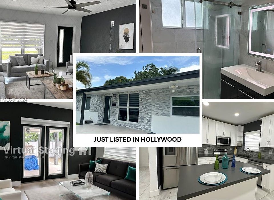 Step into this beautifully renovated 1467SF, 3BR/2BA, grey stone-front home that shows like a model! New 24x48 porcelain tile creates crisp clean look all over. Modern kitchen features Samsung SS appliances, quartz counters, island w/storage & coffee bar w/pantry area. Just painted w/accent walls, complemented by recessed lighting, new window treatments & fans with LED lights. New bathrooms w/mosaic tile shower floor, frameless sliding shower door & backlit mirrors. Honeywell Home System for AC; laundry room w/new Samsung washer/dryer, utility sink & storage cabinets. Home pre-wired for TV wall mounts & tankless water heater. Fully fenced-in lot offers space for pool, a covered patio w/new fans. This home is a true West Hollywood treasure—don’t miss your chance to make it yours!