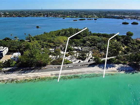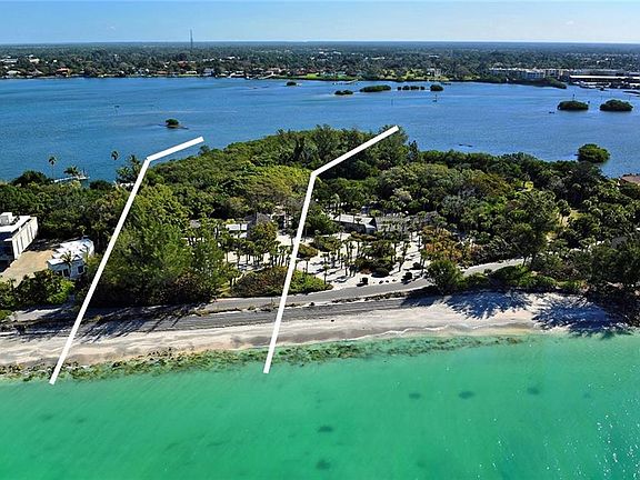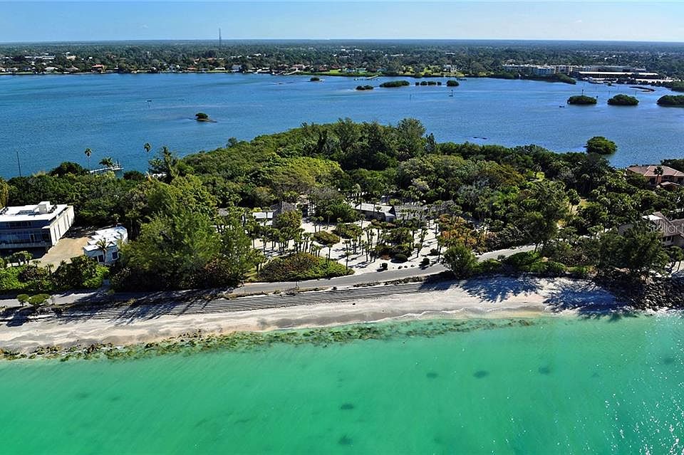 Private Beachfront Peninsula Paradise, almost 9 acres, in Southwest Florida, perfect for a developer. This is the largest single-family Gulf-front property currently for sale in Sarasota County. Magnificent splendor! Once in a lifetime opportunity to own 8.83 Acres (6.25 upland, private lagoon, and submerged land) of Gulf (400 ft frontage) to Bay on Casey Key, one of the most prestigious old Florida addresses you can aspire to achieve. This island is the destination for people who love the Florida lifestyle but want a high level of privacy and seclusion. Bring your boat to your own private "blue lagoon" with dock. Mature landscaping with inspiring banyan and palm trees. Venice airport to fly in your private plane is just minutes away. Property should be able to accommodate a helipad too. Amazing three-generation family winter estate owned since 1951. The property includes a single-family Estate Cottage with a gorgeous granite kitchen, pecky cypress walls and ceilings, a guesthouse with a two-car garage, and a detached two-car garage. While livable, the value is in the land. You can build your dream home and enjoy the breezes and fresh Gulf air. Words do not do this property justice. Take a look at the photos and video, and see yourself enjoying the warm picture-perfect sunsets while you stroll your very own private beach. As per Sarasota County, there are three buildable lots.