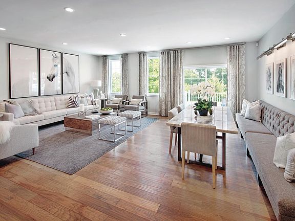 Contemporary design for an urban lifestyle. The Brookville Elite's welcoming entry opens onto a desirable flex space and the spacious, bright great room. The well-appointed kitchen features a large center island with breakfast bar for informal dining, plenty of cabinet and counter space, and a large pantry. The expansive primary bedroom suite is accented by a huge walk-in closet and primary bath with dual-sink vanity and shower. The generous secondary bedrooms each feature large closets and access to a shared full hall bath. Additional highlights include a convenient first-floor powder room, centrally located laundry, and plenty of linen and closet storage.