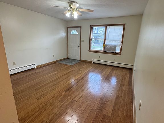 This unit is stunning. The remodeled kitchen features granite counter-tops and tiled floor. Owner will consider buying appliances for long term tenants. Washer/dryer hook-up in unit. Gleaming Bamboo hardwood floors, off street parkings and covered deck. Owner pays heat and sewer!!