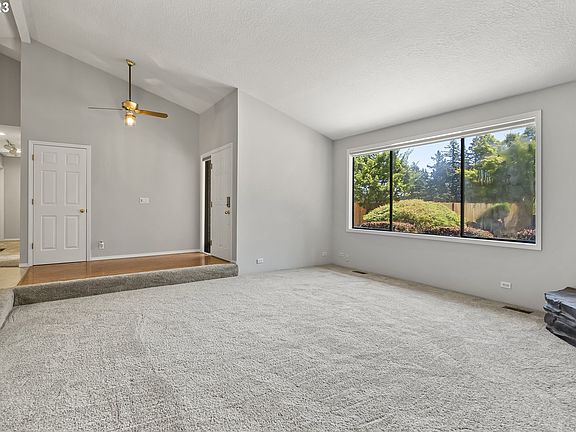 OPEN SUN 9/3 2:30-4:30 Private flag lot backing to Glenfair Park on a huge .43 acre fenced lot with RV parking! 3 bedroom/2.5 bath single level with 2 large living spaces and office/4th bedroom without closet. 2217SF. Fun family room with bar, bar sink and mini refrigerator. New interior/exterior paint, new carpet. Vaulted ceilings. Home warranty. Refrigerator, washer/dryer and barstools included. [Home Energy Score = 1. HES Report at https://rpt.greenbuildingregistry.com/hes/OR10217843]