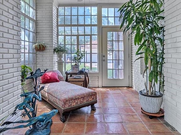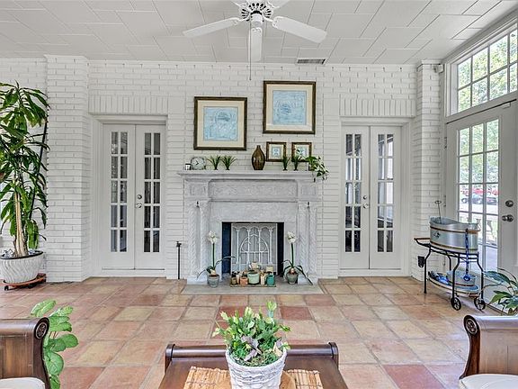 Upon entering the home, you are greeted by a spacious living area adorned with exquisite picture molding and a charming fireplace. The estate offers two additional living areas, each providing a unique space to unwind. Step into the casual living room featuring a bar, or immerse yourself in the stunning solarium with its glass ceiling and beautifully painted windows that open to both the backyard and front porch. This extraordinary space, perfect for surrounding yourself with your favorite plants and basking in natural light, will make you never want to leave.