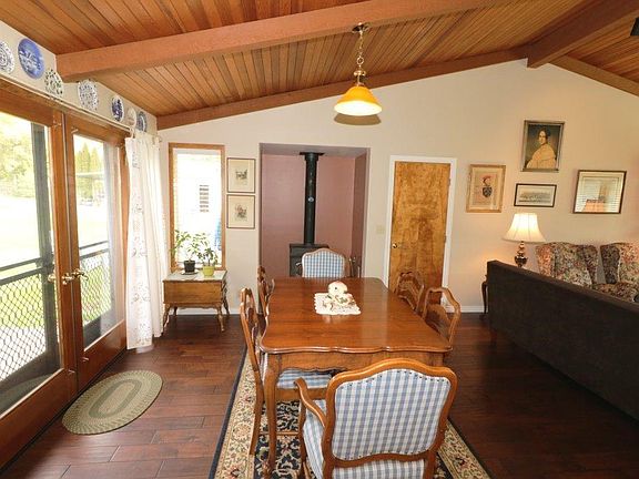 Easy Country Living in Colonial Valley! Picture perfect and meticulously maintained, this one story 3 bedroom, 3 bath home sets on 1.5 gated and fenced acres and enjoys lovely views from every room! Beautiful flooring, bright open feeling with vaulted living room, dining area with woodstove and doors to a grand gazebo, kitchen with large island, granite counter tops and a breakfast nook. Spacious laundry room with pantry storage, two bedrooms with bay windows and window seats, full bath, master bedroom with corner windows, walk in closet and bathroom with shower and skylight and lots of storage throughout. Gated and fenced, paved driveway, attached two car garage, detached garage/shop, garden equipment shed, fenced garden area or room for animals and to park an RV. Comfortable and move in ready...you'll want to call this Home!