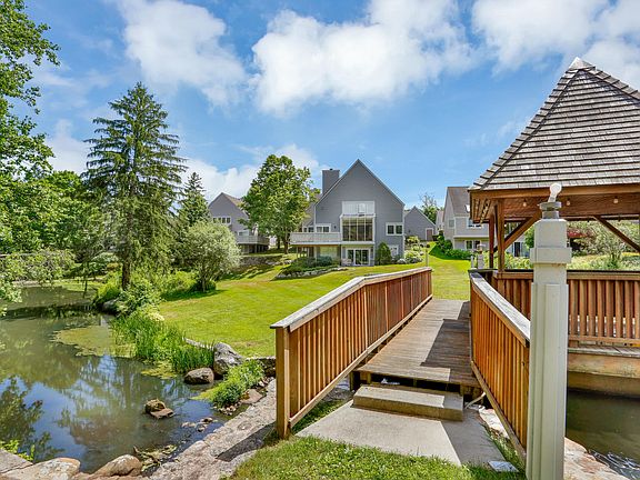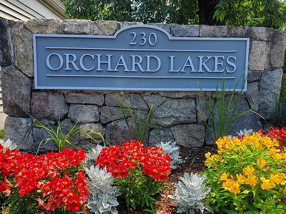 Detached Condo w/ remodeled kitchen, master bath, home office & HVAC systems in The Orchard Lakes w/ 32 open-flow contemporary designs-15 acres w/ spring fed ponds, to has dramatic 14' ceiling Liv/Dining Rm, marble surround wood burning fireplace & built-in shelves. Architectural corner sliders provide seasonal views of a brick, wrap-around terrace./ lush lawn & curated rose & shade gardens. Dining atrium w/ceiling-to-floor windows overlkg. 1st Flr Office can be readily reconverted to a MBR w/an adjacent full bath. A remodeled kitchen w/ Italian floor tile flows into separate breakfast area. Warm wood cabinetry, glass backsplash, granite countertops w/ halogen & LED lighting. Upstairs, MBR suite w/ 17' ceiling. HOAoFee inc.: exterior maintenance roofs, siding fee, snow,trash,water&grounds