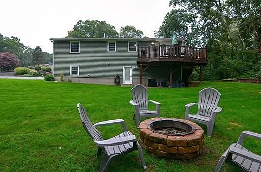 Pride of ownership through-out in this adorable well cared for home that is move in ready! Lots of upgrades here: All NEW PELLA VINYL WINDOWS, as well as the exterior deck door, and bar room door , Roof, gutters, hot water tank, garage door, are all approximately 2-4 years old. Light and airy open concept living (kitchen was renovated 2018). Dining room opens to a deck that overlooks a beautiful spacious yard! You will love the roomy 3 bedrooms and a full bath on the 1st level. 2nd level has a man cave with a granite bar, with a full bath, family room and office with a closet. This home is super-efficient with new windows and mass save insulation. Lots of value for this home with all the upgrades! Showings start at O/H Sunday 10/3/2021 12-2pm.