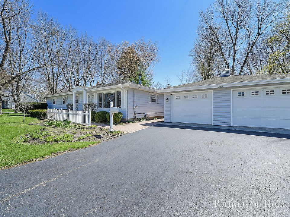 Incredible GENEVA RANCH within walking distance of Third Street and all it has to offer! Incredible family room with picture window, hardwood floors & see-through brick surround fireplace. Kitchen offers abundant cabinetry, eating area and pantry! Dining room features double sided fireplace, backyard views and a second pantry/closet! All bedrooms feature hardwood floors and nice sized closets. Fourth bedroom could be office if needed. Two full bathrooms are featured! Finished basement offers expansive second family room, bonus room, work room, oversized laundry/storage room and powder room. Your deck is surrounded by mature trees! Detached two car garage! Corner lot! Now is the time to make this home yours!