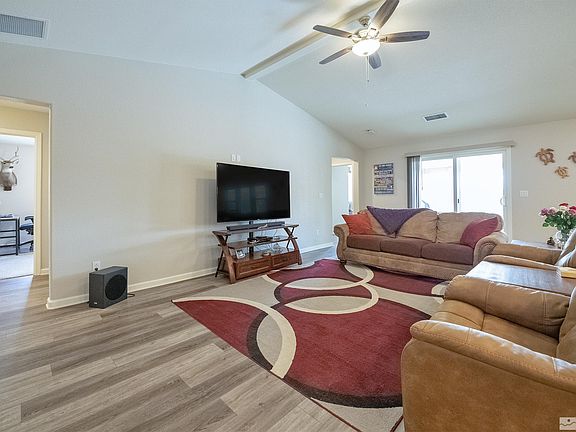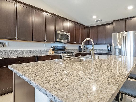 This like new home is one of the largest floorplans in the neighborhood and features Lennars Next Gen design. The single level Shire plan offers an attached suite with private entry ideal for long-term guests or family members who need a little extra space; living area, a kitchenette, and a spacious bedroom and bath. Stunning upgrades finish the living spaces including ceramic tile, granite counters, stainless steel appliances and boasts an open floor plan with vaulted ceilings & lots of natural light. Enjoying morning coffee has never been more effortless than on the expansive covered patio perfect for gatherings. The open concept kitchen is ideal for entertaining. The kitchen island includes a sunken sink and bar seating, generous cabinet space, granite counters and stainless appliances. This beautiful 2,548 sq ft home has 4 bedrooms & 3 full bathrooms. The attached "in-law" quarters is 750 sq ft & includes a living room, 1 bedroom, 1 full bathroom and a laundry room. The in-law quarters can be accessed by a separate front door or from the inside of the main home. The fully landscaped yard requires almost zero maintenance. Over $50K in landscaping upgrades. RV access located on the side of the house.