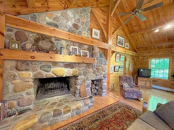 From the moment you turn down the driveway you'll be presented with storybook bucolic charm! To your left you'll find a stone outbuilding, which would make a wonderful guest cottage! Behind that and along the left side of your driveway you'll find the large garden, which presently boasts an impressive selection of organic veggies, massive rhubarb, and blueberries. To your right you'll find the path down to your large horse barn and tractor shed. Entering the home from the driveway, you'll find great closet space and ready access to the first floor full bathroom, basement, and stairs to the second floor. Heading into your large open concept living area you'll find your wood stove, and large windows placed perfectly for viewing all of the wildlife activity on the pond. From this space you'll also access your kitchen, then take a few steps down into the sunroom/library and soak in the sun's warmth even during the cooler months. From your living room you will find your large screen porch, which again, is positioned perfectly to enjoy the pond. The real surprise is the 24 x 24 cathedral ceiling timber frame great room, which has the most spectacular stone fireplace! From the great room take a few steps down into your mud room, then right into your interior woodshed! Upstairs you'll find an office nook, half bath, sewing nook, and three spacious bedrooms. Head back outside and take a walk through your meadows, check out your natural spring, then head into your hard, and soft woods. In the woods you'll find no shortage of wildflowers, exposed bedrock, and even another active beaver pond. On this property you're more likely to hear the hoot of an owl or the call of your favorite bird than you are to hear a car. This incredibly tranquil property will not be available for long, so schedule your showing before it's too late!