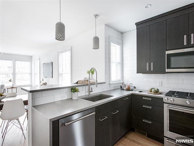 Move right into this fully renovated, modern rental featuring a bright open-concept living, dining, and kitchen area perfect for entertaining. The stylish kitchen offers quartz countertops, KitchenAid stainless steel appliances, and soft-close cabinetry, while oak hardwood floors, 9-foot ceilings, and oversized new windows enhance the space with warmth and natural light. Both bedrooms include custom closets, plus additional basement storage. Enjoy shared backyard access, in-unit laundry, energy-efficient heat and central air, and smart features including a Nest doorbell. Conveniently located steps from the NJ Transit 190 bus and a short walk to the train to NYC, with easy access to Rutherford's downtown shops and dining. No pets or smoking. Street parking only. (Listing 3325822 Confirmed 12/22/2025.)