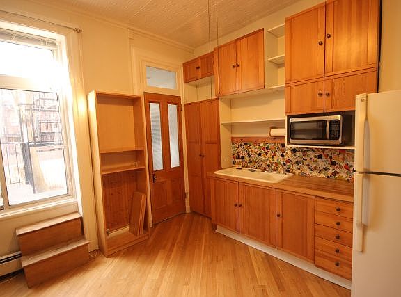 Lovely downtown one bedroom apartment with den/office and private deck leading to common backyard. High ceilings and hardwood floors throughout. Open kitchen and livingroom floorplan. Tons of built-ins. Bathroom has radiant heated floors. Basement storage. Close to all shopping and transportation.