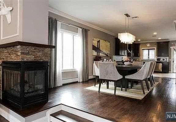 Discover an exceptional living experience in this stylish and spacious home, perfectly situated in a charming neighborhood. Enjoy ideal blend of suburban tranquility and urban convenience, with easy access to a wealth of amenities and rapid transportation to the City This 3 br home is designed for modern living and sophisticated entertaining, with a generous 3 level layout. The heart of the home is an open-concept main floor, bathed in natural light, where see through gas fireplace serves as a dramatic centerpiece. The seamless flow makes it perfect for hosting gatherings. From the dining area, a deck provides a private outdoor space, ideal for grilling and al fresco dining. An add'l room on this level can serve as a 4th bedroom, a home office, or a cozy den, complete with a convenient powder room. This space leads to a private backyard, a serene retreat for relaxation. Upstairs, you'll find 3 nicely sized bedrooms, including a luxurious primary suite with a spa-like ensuite. The property also includes an oversized garage and 1 car parking in the driveway. This location is a commuter's dream, offering multiple convenient options for reaching the city. The NJ Transit 158 bus line provides frequent and direct service to Port Authority. For a more scenic trip, the NY Waterway ferry from Port Imperial. No smoking. Pets conditional