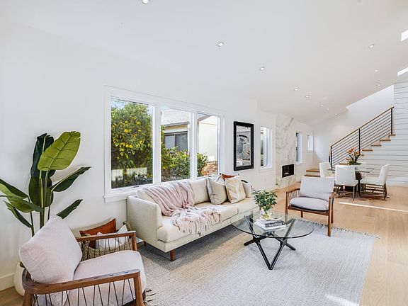 In the picturesque White Oaks neighborhood, this sleek, contemporary home has been perfectly remodeled from the inside out. Beyond the minimalist façade, a foyer gives way to the light & bright open-concept interior. Skylights line the soaring ceilings as European Oak floors & Pella windows stretch from one sunlit room to the next. Dine in front of the stunning, modern fireplace after preparing a delicious meal in the crisp white kitchen with shaker cabinetry & high-end appliances. Off the kitchen, French doors open to reveal a spacious family room with glass sliders leading to the private backyard & patio. Enjoy the benefits of an entry-level bedroom with 3 closets & a luxurious ensuite featuring a dual sink vanity, a walk-in shower, & a standing tub. Head upstairs to find 3 pristine bedrooms one with an ensuite & an additional full bathroom. A short distance from downtown San Carlos, Burton Park, & Caltrain, 230 Pearl Ave is designed for a comfortable & convenient lifestyle.