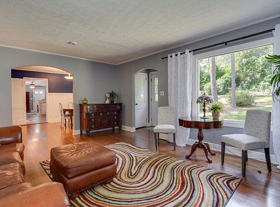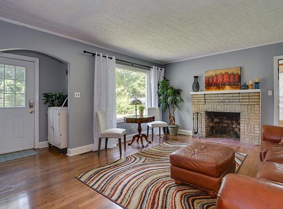 Easy like Sunday morning - every day of the week - this cozy cottage in the woods offers endless places and spaces to just be. Scan the day's headlines by the brick wood burning fireplace. Get lost in a good book in the bright, airy sunroom. Sip your morning coffee on the spacious deck overlooking nearly an acre of mature trees and lush landscaping. Refinished hardwood floors, charming wainscoting and arched walls, plus numerous other architectural details add to the charm of this heartwarming home.
