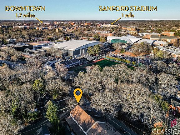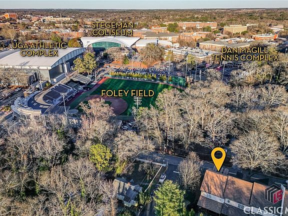 LUXURY TOWNHOME in HIGHLY SOUGHT AFTER LOCATION: Just in time for spring and UGA's baseball season, 230 Pinecrest Drive is a dream come true for the buyer who prioritizes convenience and maintenance-free living in a quiet, luxurious townhome setting close to both campus and 5 Points. Located at Foley Commons, this beautifully maintained townhome is the only townhome in the development with TWO views of Foley Field - the first from the dining room and the second from the covered back deck. A stone's throw from Foley Field, Butts-Mehre Heritage Hall, the UGA track, the UGA stadium, Lumpkin Street, a short walk to campus, and 5 Points shopping and restaurants, the condo has 3 large bedrooms, 3.5 bathrooms, 9 foot ceilings, a walk-in laundry, large dining room that faces Foley Field, a kitchen with granite countertops and custom cabinetry that opens into a spacious den with gas fireplace and custom mantel, custom shelving, plentiful closet storage on each level, and a covered deck with views of Foley Field. The owner's suite boasts a large walk-in shower, tub, and large walk-in closet. A two-car garage on the lower level with additional parking for guests located behind the building. Less than half a mile to Sanford Stadium and the Coliseum - what's not to LOVE about 230 Pinecrest Drive? Please beware this townhome development has restrictive covenants preventing ownership below 25 years of age.