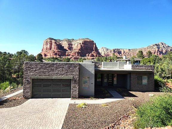 Sedona Living at it's BEST! Stunning contemporary home with split floorplan, nestled on a tranquil oversized lot with stunning views of Courthouse Rock. The central great room has high ceilings and is filled with natural light and amazing red rock views from EVERY window. The elegant fireplace is flanked by custom cabinets for storage plus lighted gallery area above to enjoy your favorite art pieces. The handy powder room is just around the corner. The gorgeous kitchen has quartz countertops, high-end cabinets with soft close drawers, 5-burner gas range and step-in pantry by California Closets, all designed around an oversized island with breakfast bar. The dining room can accommodate a large table and hutch. The master bedroom is perfect size, with access to the covered patio, amazing red rock views and lots of natural light. The master bath has a double vanity, step-in shower, and deep soaking tub. California Closes designed the huge walk-in dream closet. The two additional bedrooms are located at the opposite end of the home. Both have lighted ceiling fans, and the second bedroom has red rock views. The full guest bath sits between. The laundry room has a frontload washer and dryer, lots of cabinets and a handy folding counter. The double garage is oversized and has tons of extra storage plus an amazing custom garage door that fills the area with light. 12 Month Lease and Renters Insurance Required May consider one small dog No smoking in the home, garage or on the property No SUBLEASING OR CORPORATE LEASING ALLOWED