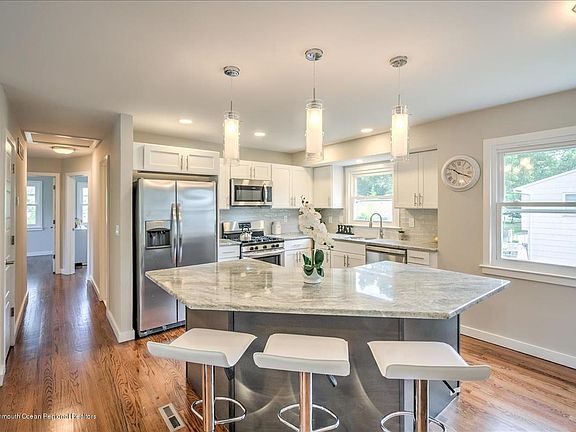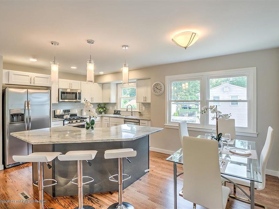 Expansive and renovated 4 bedroom home with plenty of room for the whole family in a quiet and family friendly neighborhood in Bayvillle. This property has been updated inside and out and features hardwood floors through the main level, open concept and bright spaces through the living room, dining area and new kitchen with upgraded cabinets, stone counters, stainless steel appliances, stylish tile back splash and over sized center island with breakfast bar, 3 spacious bedrooms, a new and modern full bath, and plenty of closet/storage space. The lower level has a 4th bedroom, large den/family room, powder room, laundry/mud room and attached garage. All this on an over sized corner lot with a large fenced yard and storage shed. Make your plans to check out this great home today!