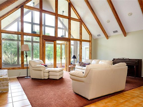 This unique home is surrounded by trees with a long winding drive through the 15 acres. This one owner home was designed by the matriarch of the family and has a contemporary warm feel that is often not duplicated in the cookie cutter homes of today. Lots of great architectural elements including a rock wood burning fireplace, a spiral staircase to the large office, a huge wall of windows overlooking the pool & a master bedroom with 3 large closets. The 15 acres includes a storage shed or animal shelter & a pond with fish. Seller will provide new survey prior to closing with an acceptable offer. Buyer to verify sq. ft. Acreage size is an estimate & new survey will determine size.