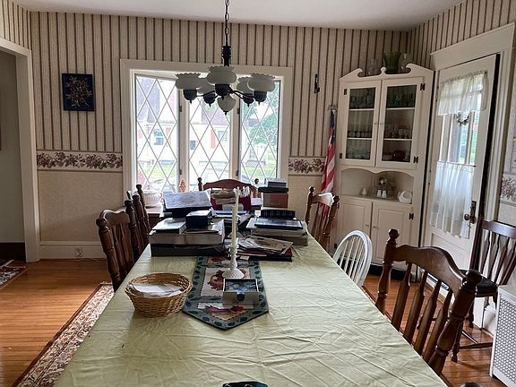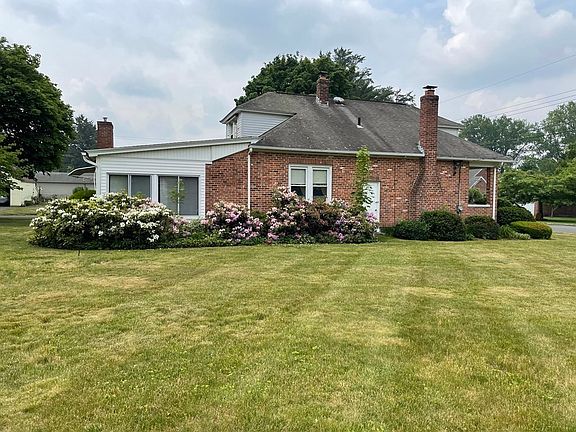 Brick home on nearly a half acre corner lot, on a dead end street Side entrance offers a Mud rm with closet that leads to Eat in Kitchen. There are plenty of cabinets. Formal dining room with built in storage, china cabinet, wood flooring. Living rm has wood burning fireplace. First fl bedroom has 2 closets and a tandem rm that could be an Office. Lots of storage in this home. Spacious family rm w Gas fireplace and built in shelving. The 3 season sunroom offers extra living area and leads to expansive yard. Two bedrooms on 2nd level. One bedroom closet is in hallway. Beautiful flat yard features perennials and garden areas. Single car garage, with door opener. Very large storage shed. . Enjoyable covered front porch. Some decorating will make this home shine. Exterior exit from basement leads to side yard. Property to be "Sold AS IS"