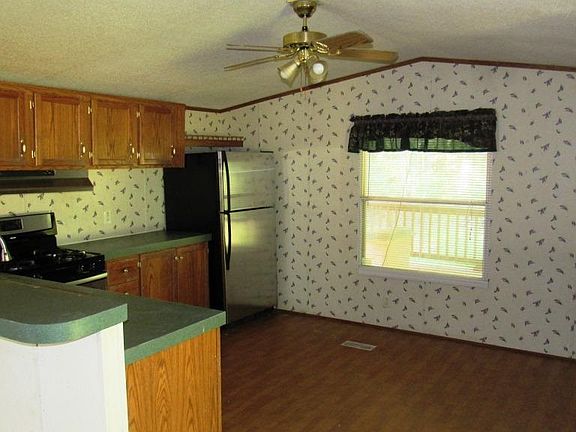 Come take a look at this 2/2 manufactured home on just under 4 acres. This home has a spacious covered deck, stainless kitchen appliances, fenced yard, carport and a storage building. Call to see today! $49,500