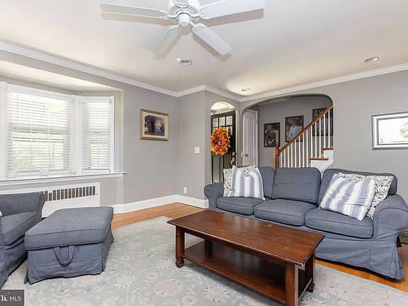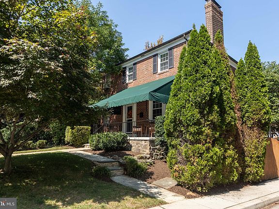 One of the finest 3 bedroom end-of-group homes you will find in Rodgers Forge! Located in the heart of the neighborhood, this home is situated on a large corner lot with a spacious and perfectly landscaped yard. A detached garage to fit a small to medium sized vehicle or plenty of storage.  The interior of the home has been updated top to bottom throughout the years (New Shingle Roof in 2022). The first floor features an opened up kitchen with newer appliances (2019), stone countertops, tile flooring, abundant shaker cabinets and a center peninsula sink. The living and dining rooms present with wood floors (refinished in 2013), built-ins, crown molding, a bay window in the front of the house and a fully functioning wood-burning fireplace (liner and masonry re-pointed in 2020). The basement showcases a carpeted rec room, separate laundry area (washer/dryer new in 2018), a full bathroom as well as room or storage and utilities (hot water heater 2021, AC 2023). This is truly the quintessential Rodgers Forge house that checks every box the discerning home buyer is shopping for in this gem of a community!