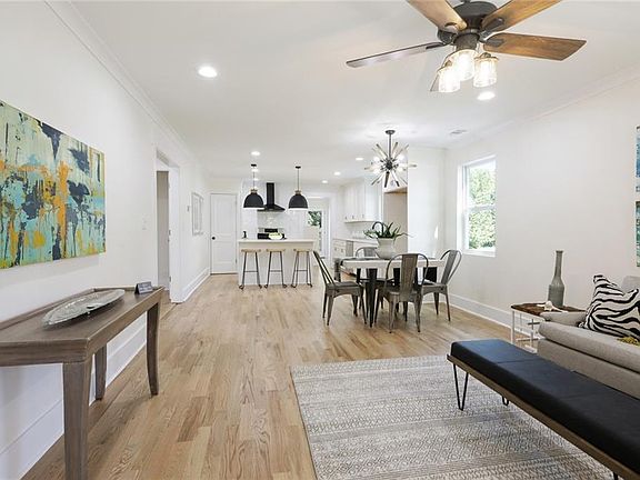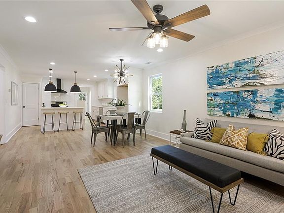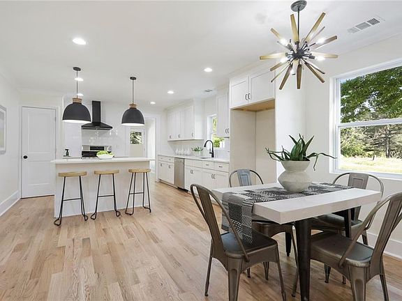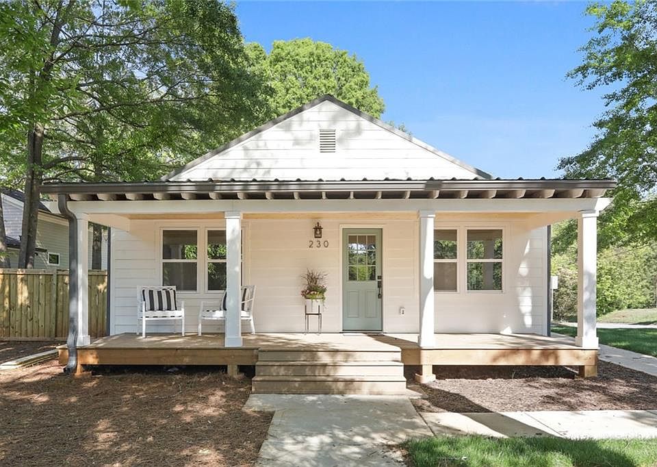 This charming modern bungalow will blow you away! Brand new renovations and perfect Marietta location. Here you can sit on your inviting front porch or head around back for a dip in your own personal pool oasis. The light filled open floor plan with designer kitchen, bathrooms, and custom finishes will make you fall in love. Beautiful real hardwoods throughout, quartz countertops, subway tile kitchen, farmhouse sink, and large island are some of the amazing features of this home. There are two nicely sized secondary bedrooms that share a beautifully updated bathroom and a private master bedroom with en suite that has his/hers vanities and an oversize walk in shower. Get the best of both worlds out back with a RARE in ground pool along with a fully fenced level backyard. All within walking distance to the Marietta Square.