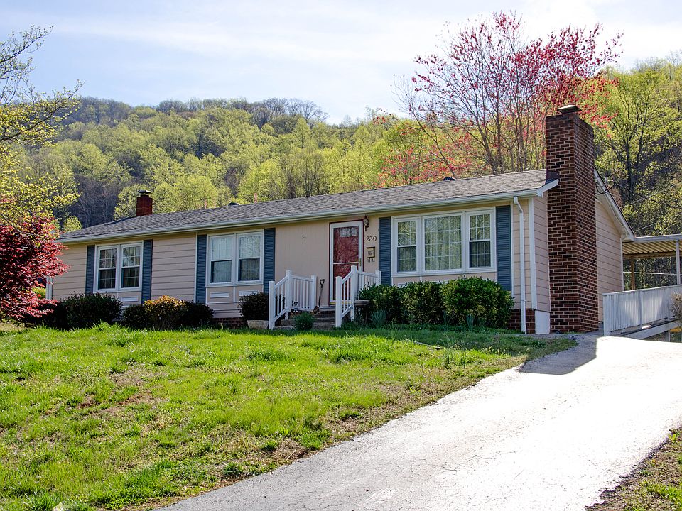 Nice Ranch home in the beautiful Town of Lovingston. Enter the Living room with a cozy fireplace that opens up into the separate Dining Room with sliding glass doors that lead out to a 21 X 12 covered deck. The kitchen is being remodeled with new cabinets and some new appliances. Main level has 3 large Bedrooms. Downstairs has its own Kitchen & Living Room with 3 more large rooms with closets and a bathroom. A comfortable covered patio at the entrance. Nice yard with select plantings, a koi pond also a terraced back yard with plenty of space for a garden. There is also 28 X 10 workshop/storage shed.