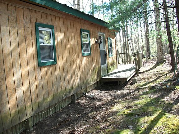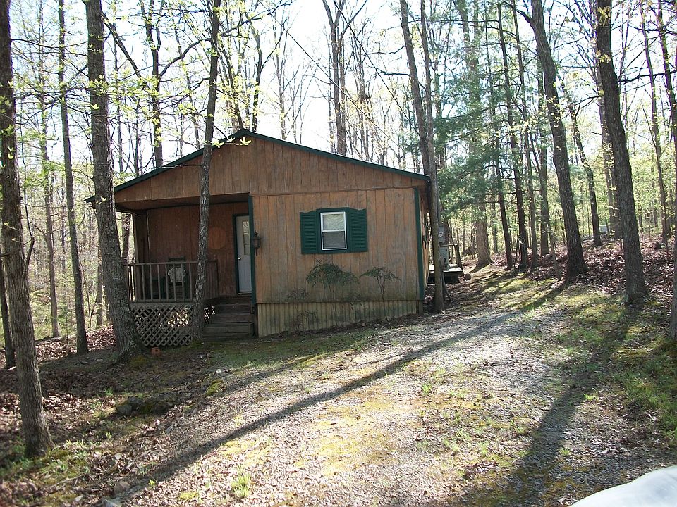 Cute cabin less than 2 miles from private marina and TN river. Needs TLC but could be a great getaway or a hunting cabin. In wooded area in Ponderosa resort. Furnished. 2 bedroom. 1 bath. Laundry room. Kitchen and dining area. Deck on back.