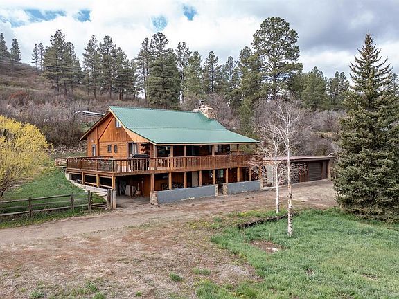 Come and witness this beautiful 3-bedroom 2 bathroom just outside beautiful Pagosa Springs. This home is located on a spacious 2.86 acres. An automatic secured gate welcomes you into ample entertainment space, both indoors and outdoors. This home was renovated in 2015 as a single-family home. As you enter the main entrance you are met with beautiful, vaulted ceilings. Next is a cozy living room with an inserted wood burning fireplace. Open concept to dine and host dinners. The kitchen is equipped with all stainless-steel appliances and updated kitchen fixtures. Off the dining room is a family room/exercise room and coffee bar. This space could be used as a game room and can comfortably sleep up to 4 guests. On the main floor is a full bathroom and secondary bedroom with access to the scenic and spacious outdoor patio. At the top of the stairs is the third bedroom and additional closet space to store winter gear, extra bedding, or luggage. Off the secondary living space are doors to the shaded wrap around porch. Located on the lower level is a walk-out basement which is currently being used as the master bedroom with plenty of room for a lounging area to watch movies, visit, and relax. An additional bedroom off the master which could serve as a large walk-in closet or nursery for young children. A full bathroom is located between both rooms. Also located on the lower level is the laundry room with a full side-by-side washer and dryer setup. A 2-car garage is just steps away from the master. Great for hanging out with friends and family, working on your dream car, or used as a game room. The property line is fenced for horses or livestock. A covered lean too is perfect for a boat, RV, or horse trailer. A horse barn is located at the far end of the property with plenty of potential for whatever you choose to use it for. A short walk from your front door leads you to a fenced off area to access the Stollsteimer Creek, which borders the property. Full in the spring, and cool in the summer, it’s a great place to relax and let the kids or pets play. A fenced off area in the creek provides ample water and safety to all pets and livestock. There is also potential for a beautiful, shaded pond area next to the house. Included, are two cisterns on the property, self-sustaining well, central A/C and septic. A concrete pad is located above the property, that could serve as a detached garage or storage shed area. The home is bordered by yearlong neighbors who are happy to welcome you to this great community in Aspen Springs. This property has so many perks and possibilities the ideas are endless, with the freedom of NO HOA. Great investment property for Air B&B, short/long-term rental, or a fabulous family home. Book your tour today!