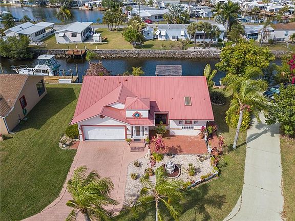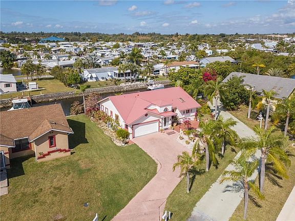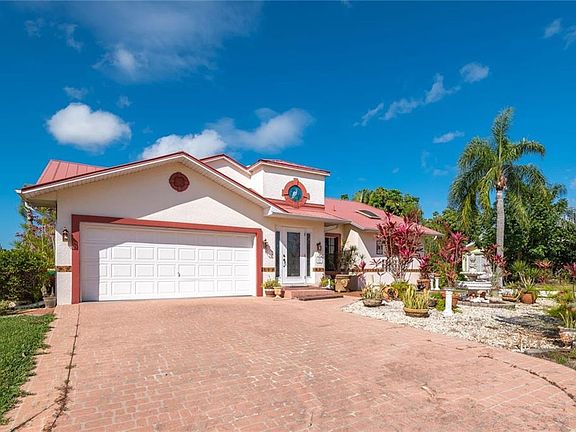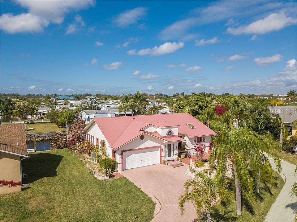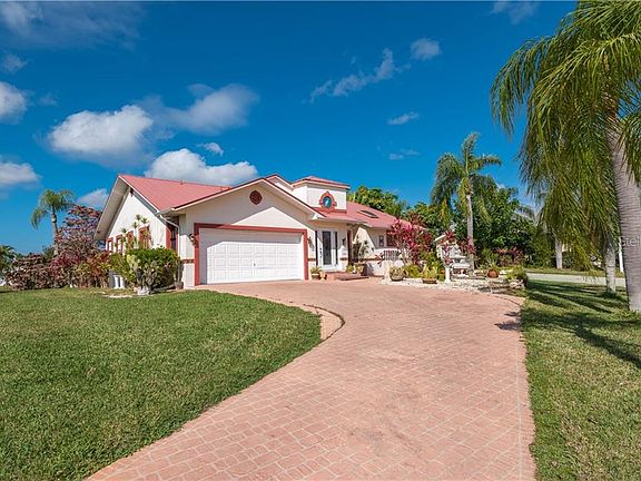 Sailboat access 2 bedroom, 2 bath with a bonus room in a small HOA community that has a large pool and tennis court just an easy 2 minute walk away. Home has a metal roof, tile flooring except bedrooms, high ceilings, open floor plan with an eat in kitchen. Lots of brick pavers including walkways and patios that are separate from the covered lanai. The bonus room has 2 pocket sliders that close it off from the kitchen and dining area. The high ceilings and an abundance of windows make this home light and bright. A/C unit is 2014. The washer and dryer hook ups are in the garage but can easily be changed back to the computer "closet" off the kitchen hall. Boat directly from your back door through Alligator Creek to Charlotte Harbor and the Gulf.