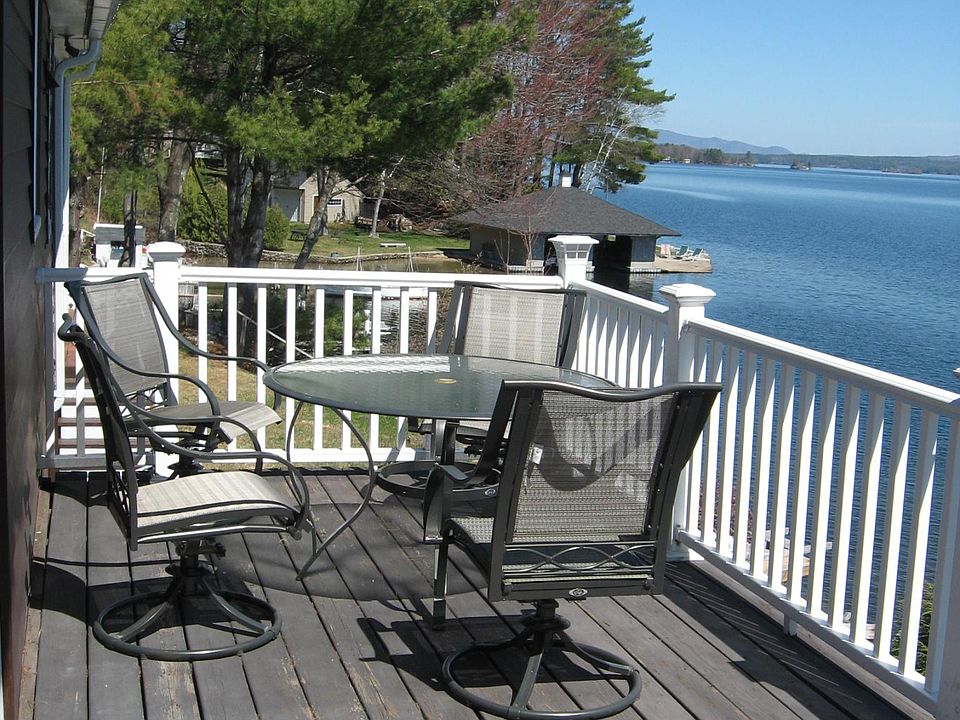 WEEKLY RENTAL THE WEEKLY RENTAL IS $2250 ( NOT $2250 PER MONTH )This cozy cottage with 100 feet of waterfront and a dock is located on quiet Route 11D in Alton Bay NH. Wake up each morning to a beautiful sunrise across the water and a fantastic panoramic view of Lake Winnipesaukee. This location provides a great starting point for all the activities around Lake Winnipesaukee or for just a relaxing week in the lakes region. the cottage is fully furnished and the kitchen is equipped with dishes and service for 8. The main cottage has the kitchen and a living room which opens out to the deck with a retractable awning. There are two bedrooms on this floor one with a king size bed and one with a queen size bed. There is a full bathroom on this floor as well , renters must provide their own towels. There is a second bathroom and a game room/ sitting room on the lower level. This room also has a laundry room. The annex has two additional bedrooms one with a double bed and one with two twin beds . The annex also has a sitting/ TV room with a pull out couch. There is parking for 3 cars in front of the cottage and an additional two parking spots in front of the garage. The lot is terraced, with a walkway and stairs to a large deck at the waters edge and a 30 foot dock that extends out into the lake that can accommodate a good size boat. M & R license # 058409 NOTE : the rent is $ 2250.00 per week