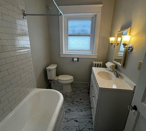 Fully renovated 1 bedroom, 1 bathroom apartment on 2nd floor of a two unit property. Close to public transportation, restaurants and minutes away from downtown Allentown. Fresh paint throughout the apartment. Updated bathroom and kitchen are the highlights of this apartment. Large bay windows in the Living Room let in natural light in an open layout with the eat in Kitchen. Renter is responsible for Gas & Electric Utilities. Water and Sewer/Trash is shared with Unit 1. Heat is provided by Landlord. Small Pets (Cat or Dog less than 20 lbs) allowed but will include a one time non-refundable Pet Fee of $100, plus a $50 monthly fee. Two car garage available for an additional cost of $200 per month to provide for vehicle parking and extra storage. Garage has electric door opener and access to the yard.